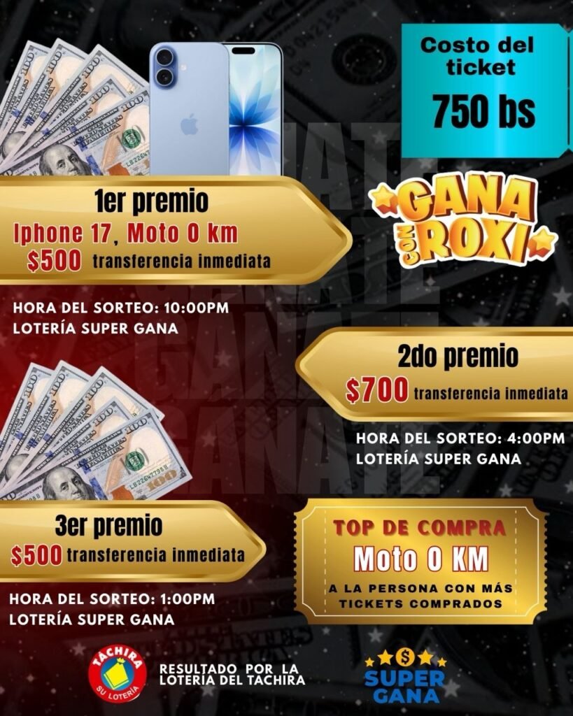 Participa en el sorteo del mes y compite por premios espectaculares: motos nuevas, iPhones de última generación y efectivo al instante. ¡Con un solo ticket puedes cambiar tu día!